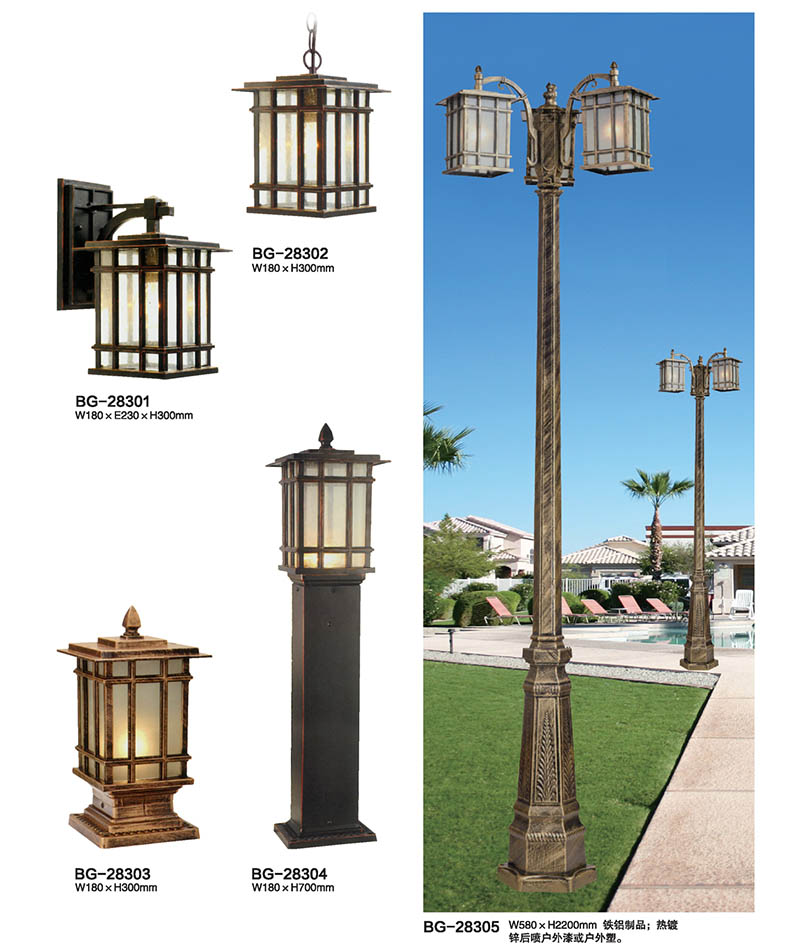* 庭院灯可根据照明需求自由选择:单头庭院灯、双头庭院灯